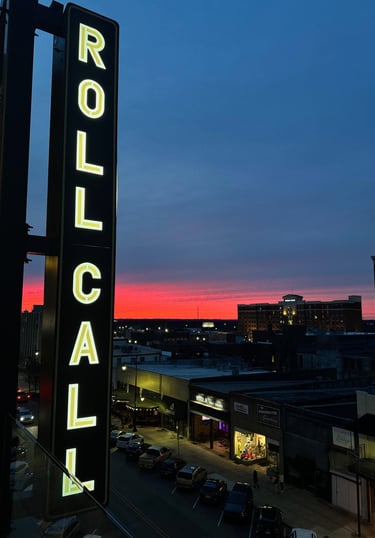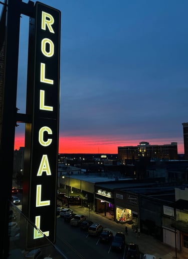 Roll Call - (2321 6th St, Tuscaloosa) At the top of The Alamite hotel. Rooftop restaurant and bar with cool, casual vibe! Indoor - outdoor seating, live music on weekends.